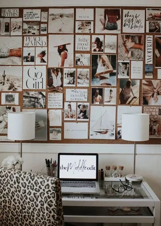 A vision board with career dreams and goals.